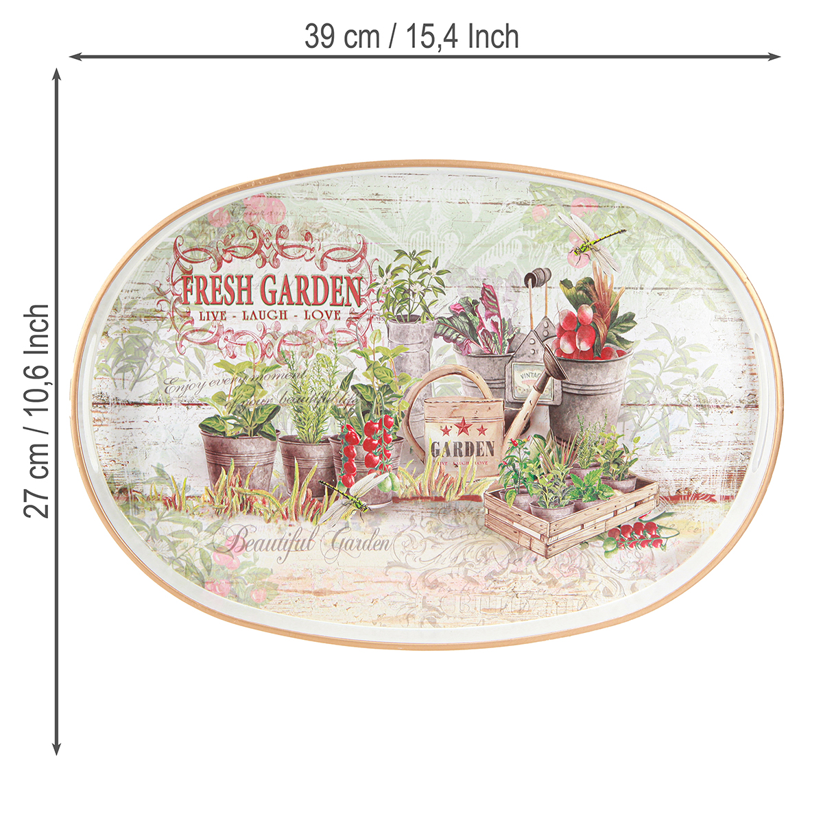 Termék neve: Ovális fogantyús tálca Fresh Garden Vintage 39x27x3,5cm