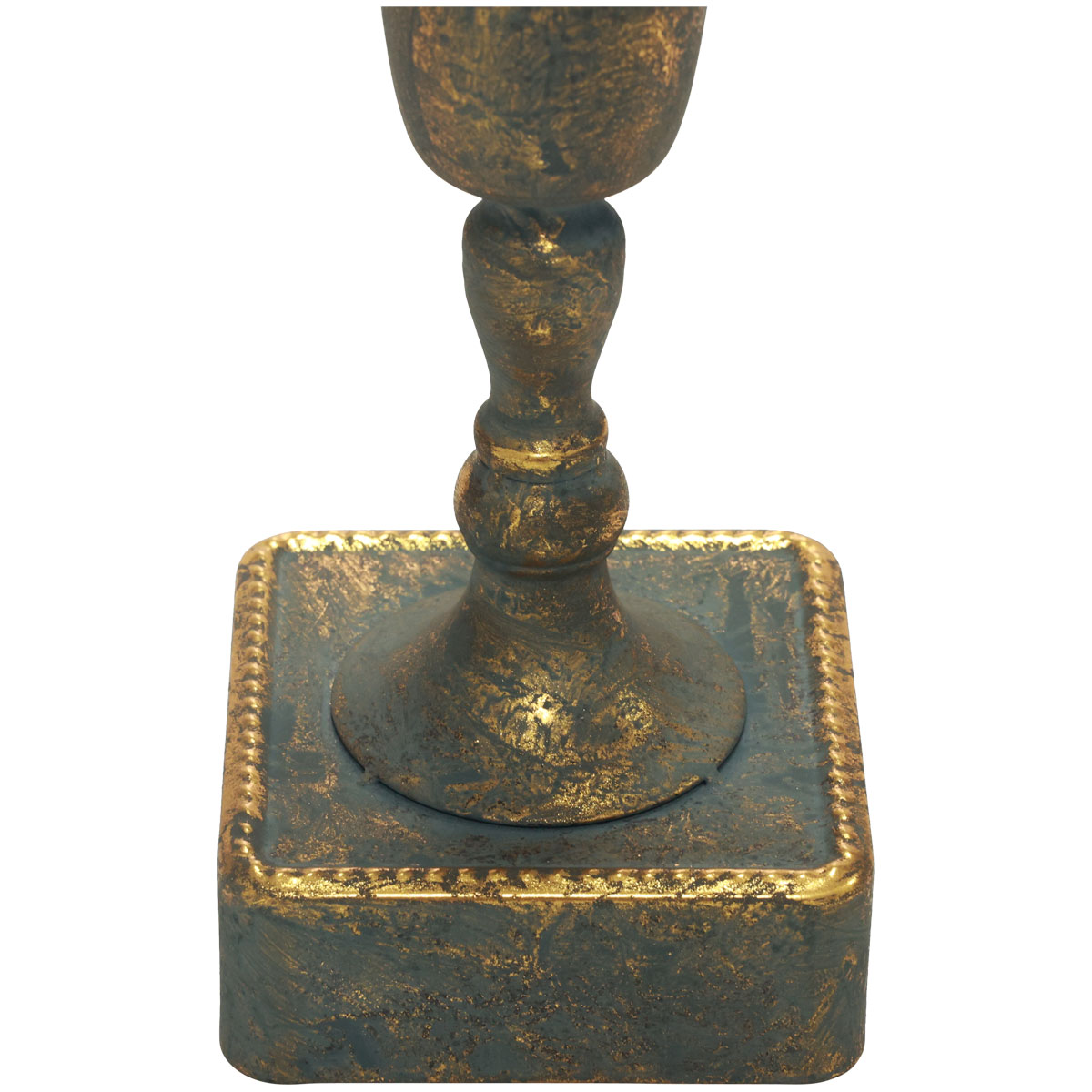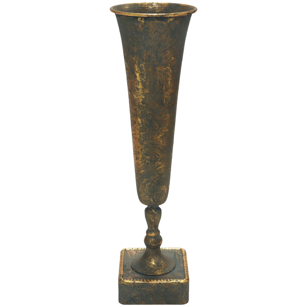 Az arany színű padlóváza kifinomult kék-szürke antik bevonattal lett öregítve. A díszváza karcsú csésze díszpohár lábáig szűkül. A négyszögletes, lekerekített sarkú platform megbízható állványt biztosít.