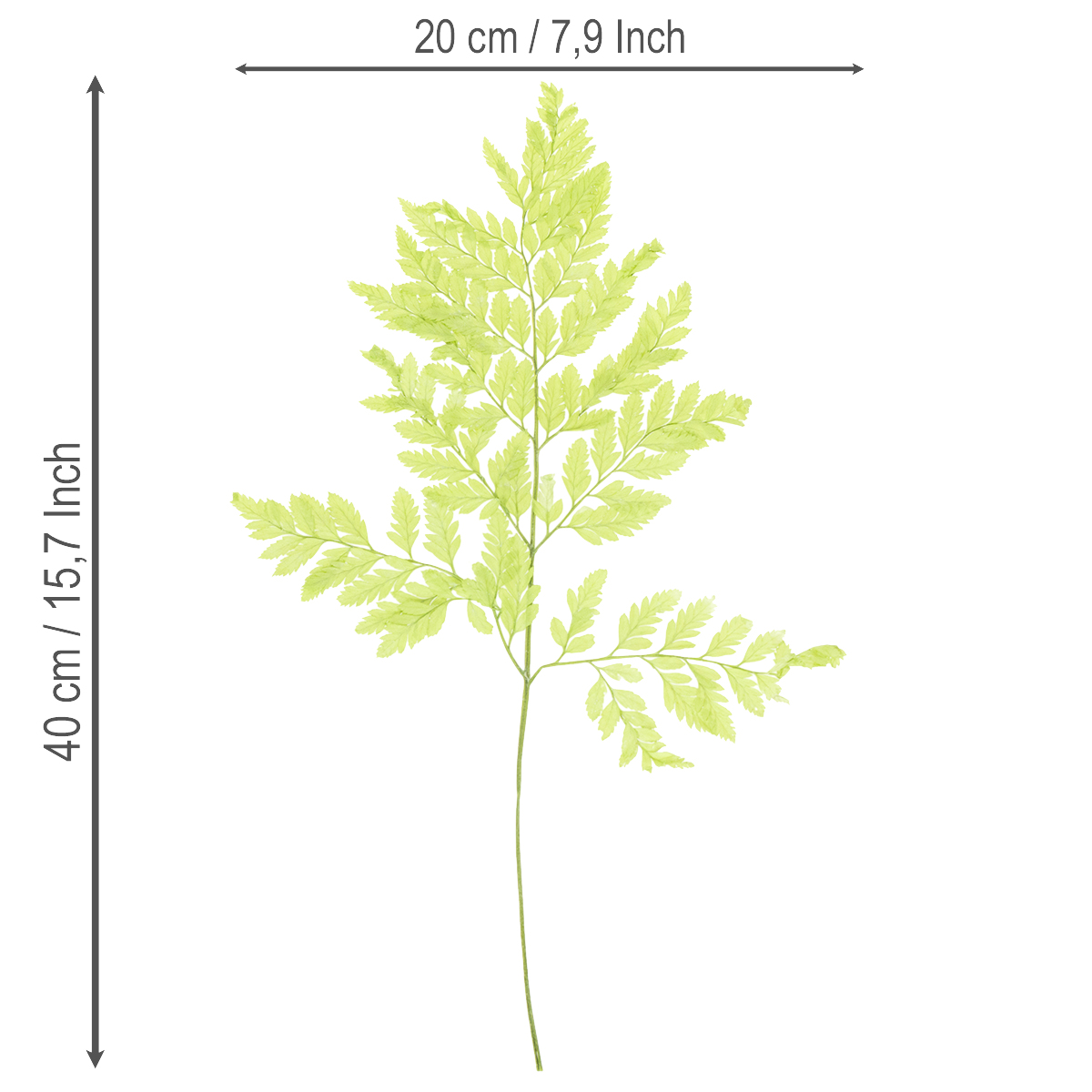 Ez a készlet tíz, egyenként 40 centiméter magas szárat tartalmaz. A szárított páfrányok finom textúrája és világoszöld színe tökéletesen illeszkedik más anyagokhoz, például fához, üveghez vagy kerámiához. Használd ezeket a növényeket tartós páfránydekorációként otthonodban, hogy természetes és hívogató hangulatot teremts. Fedezd fel a számtalan tervezési lehetőséget, és engedd szabadjára a kreativitásodat!