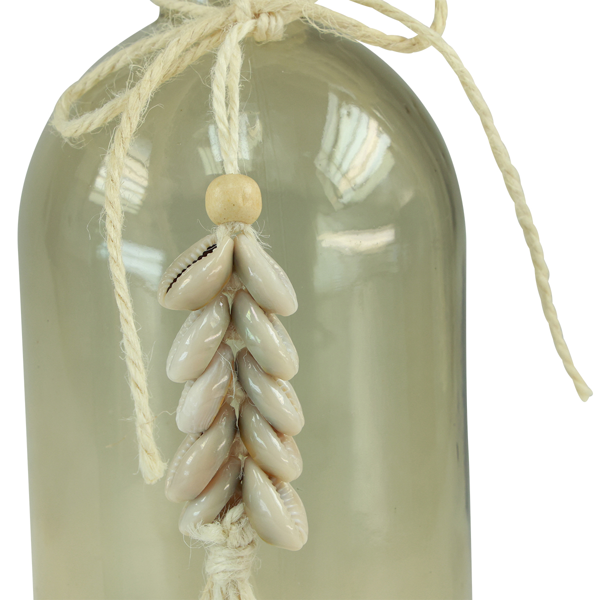 A Cowrie csigaházak olyan különleges formájúak, hogy egykor fizetőeszközként keresték. A forma úgy néz ki, mint két apró rákkarom. Még a tüskék sem hiányoznak. A cowrie kagylókkal ellátott kötél rojtokban végződik, így a palackdísz különösen nyáriasnak tűnik. Szinte a makraméra gondolsz, az igazi cowrie kagylók olyan művészien vannak a zsinórba kötve.