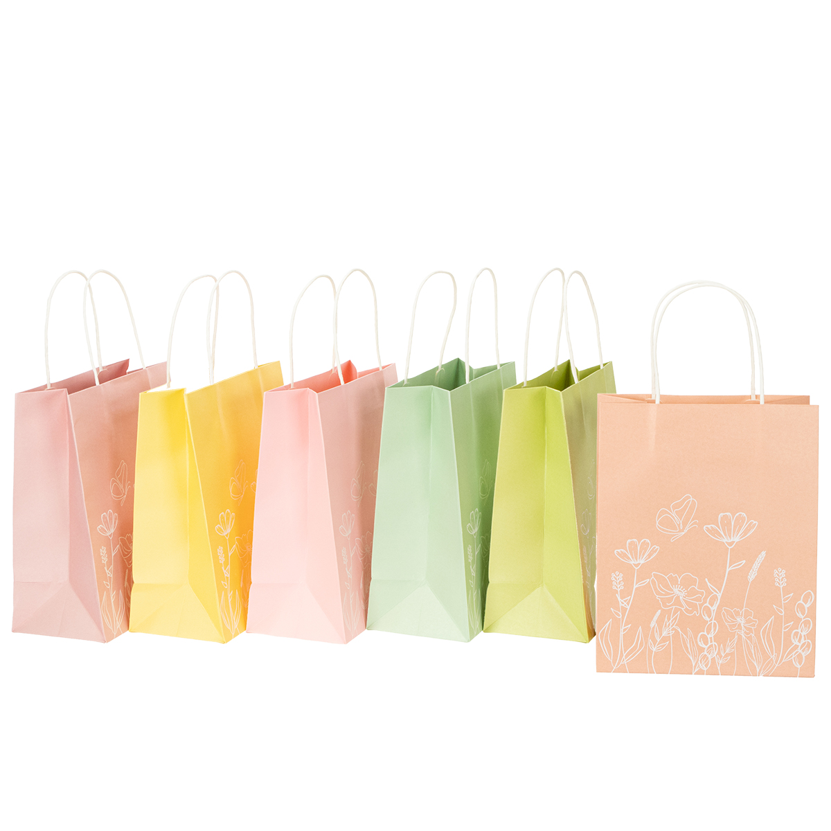 A zacskókra finoman nyomtatott virágminta különösen figyelemre méltó. Eleganciát és frissességet kölcsönöz a zacskóknak – tökéletesek tavaszi fesztiválokra, nyári születésnapokra vagy romantikus alkalmakra. Azok, akik értékelik a fenntarthatóságot, szintén lenyűgözve lesznek: a zacskók papírból készültek, így környezetbarát alternatívát jelentenek a műanyag csomagolással szemben. A praktikus hordozófogantyúk megkönnyítik a használatukat, és biztosítják a becsomagolt meglepetés stílusos szállítását.