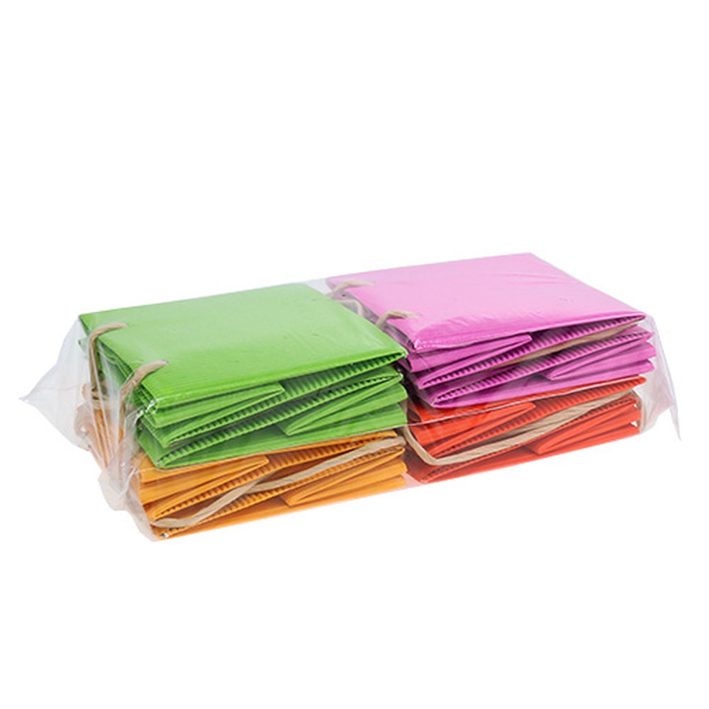 A papírzacskó egy 8 darabból álló készlet része, egyenként 2 narancssárga, zöld, sárga vagy rózsaszín zacskóval. Az egyes táskák mérete körülbelül 10,5 x 10,5 x 10,5 centiméter. Az ajándéktáska azért is olyan stabil, mert a felülete hullámos, így nagyobb súlyt is elbír. Ezenkívül az alja további kartonpapírral van megerősítve. A hordtáska akkor is nagyon sikkes, ha megtöltöd házi sütivel vagy egyéb finomságokkal, majd nagyon stílusosan magaddal viszed egy baráti találkozóra.