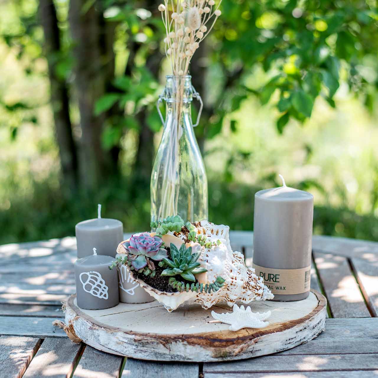 A barna sokkal sokoldalúbb, mint elsőre tűnik! Például asztalelrendezést készíthet gyertyákkal egy fatálban. Virágos hab, arany színű vintage gyertyatartó rögzítéshez és arany kiegészítők, valamint szárított természetes anyagok egészítik ki egy vagy több hengeres gyertyát egy nagyon nemes kompozícióvá. Vagy a taupe trendet választod idén tavasszal? Ezután cserélje ki az arany tónusát friss világoszöldre. A korán virágzó, bolyhos húsvéti tojások és a zöld szizál, a nagy viaszgyertyával kombinálva gondoskodnak arról, hogy kora tavasztól a húsvéti dekorációig mindig legyen új fénypont! A még változatosabb vagy eltérő méretű gyertyapoharakhoz ezek a díszgyertyák nem csak más méretben, hanem más színben is kaphatóak üzletünkben!