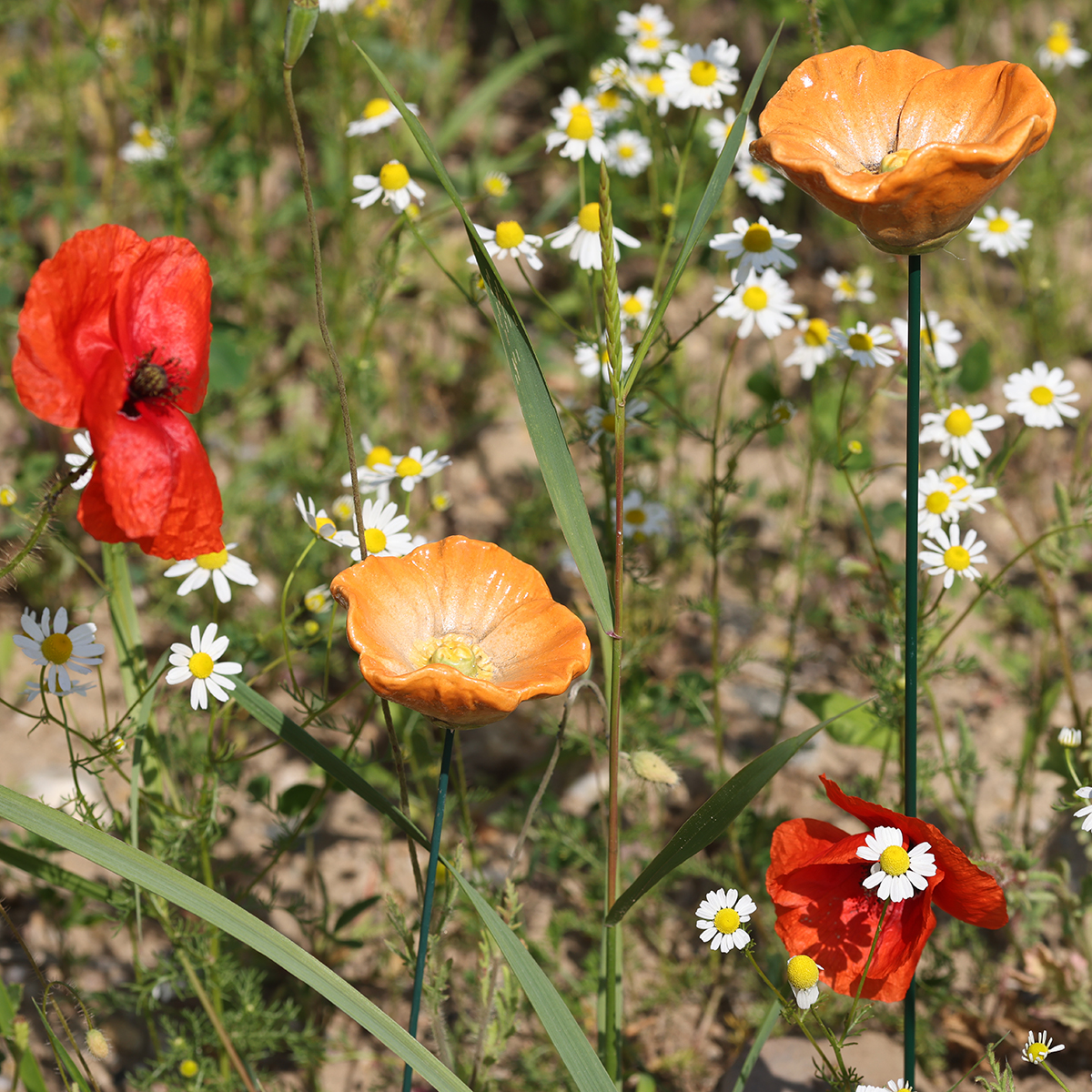 Különösen praktikus: Masszív hegyüknek köszönhetően ezek a kerti karók könnyen elhelyezhetők földben, kavicsban vagy akár virágcserepekben is. Akár feltűnő egyedi dekorációként, akár egy bájos kompozíció részeként, ezek a pipacsok mindig örömet okoznak. Ráadásul időjárásálló konstrukciójuk ideálissá teszi őket egész éves használatra (kivéve a fagy idején).
