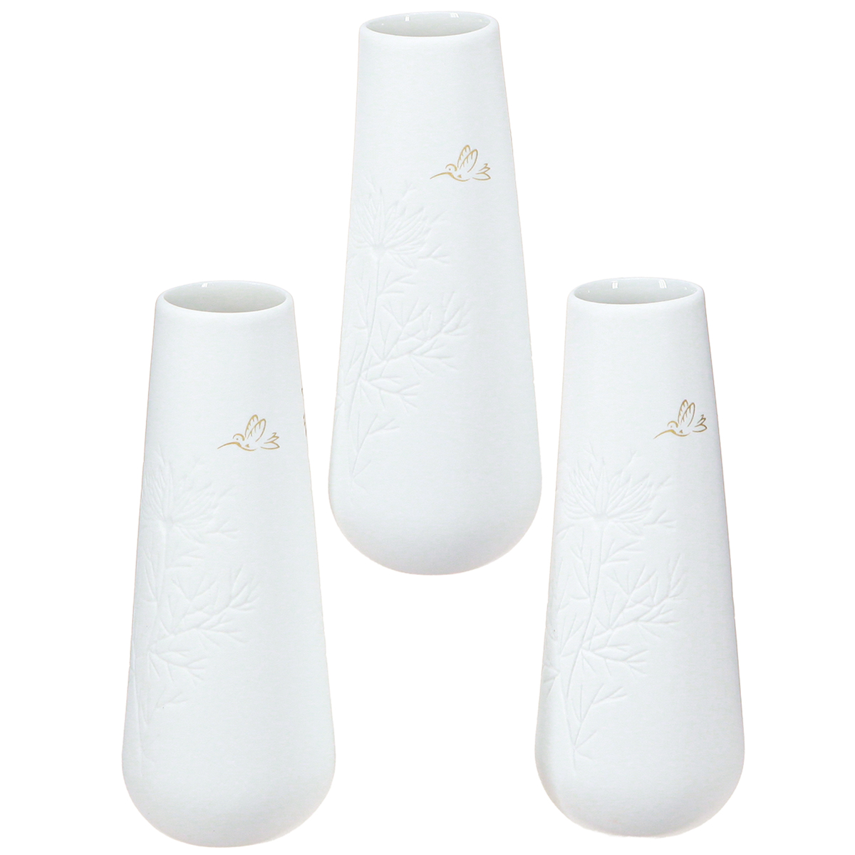 Porcelán váza fehér, arany motívummal – Elegáns virágváza 3 db H12cm 3 db-os készletben