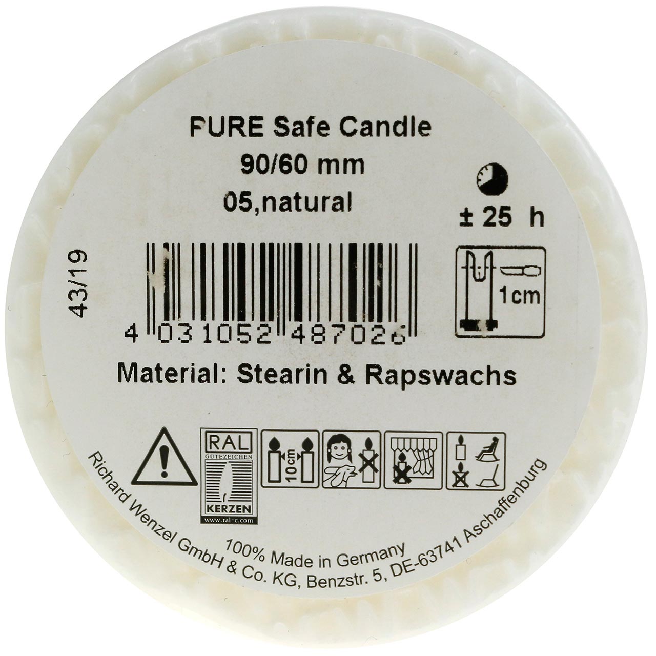 Termék neve: PURE Nature Safe Candle oszlopos gyertya sztearin, repceviasz 90/60mm fehér 1 db