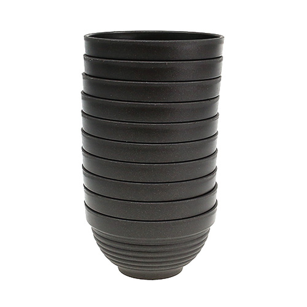 Az antracit műanyagból készült R-héj külső átmérője körülbelül 13 centiméter, míg a belső mérete körülbelül 10 centiméter. A tál magassága körülbelül 7 centiméter, falvastagsága körülbelül 0,5 centiméter. A tál készlet 10 darabot tartalmaz ezekből a praktikus műanyag tálkából, amelyekkel kényelmesen díszítheti erkélyét. A tálat saját maga is díszítheti szalagokkal, borostyánnal, indákkal, hogy a tulipánnal beültetett virágcserepet például szobadíszként használhatja szállodai halljában, fodrászatában vagy kerti partiján.