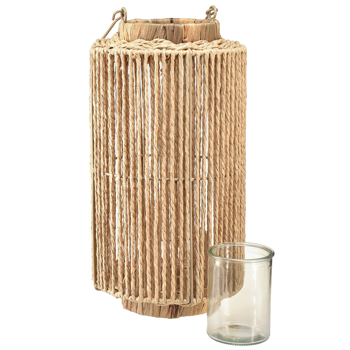 Raffia lámpa fogantyús természetes szál LED gyertyához Ø19cm H36cm