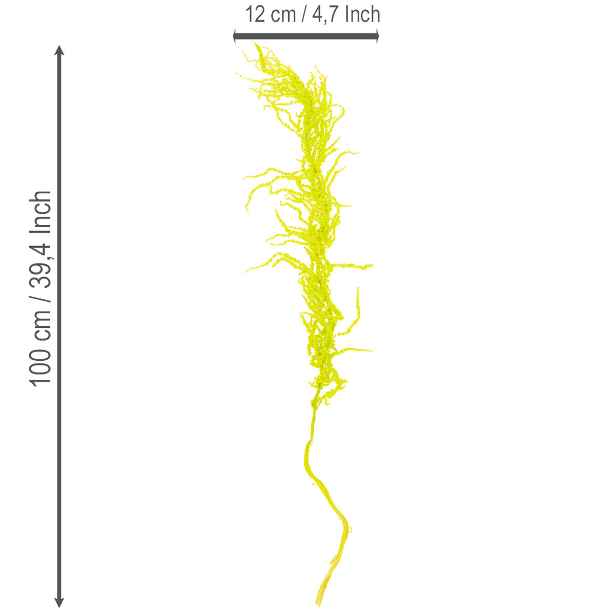 Ezek a festett szárított virágok gyönyörűen harmonizálnak más zöld díszvirágokkal, de önmagukban is használhatók látványos díszként. A nappali dekorációjának változatosságáért kombinálhatod őket rusztikus koszorúkkal vagy elegáns kerámiákkal. Finom megjelenésük ellenére a szárított amaránt nem igényel intenzív ápolást – egy enyhe porolás is elég ahhoz, hogy csúcsformában maradjon. 100 centiméter hosszúak és öt szálból álló csokorban ezek a dekoratív szárított virágok feltűnő látványt nyújtanak bármely szobában.