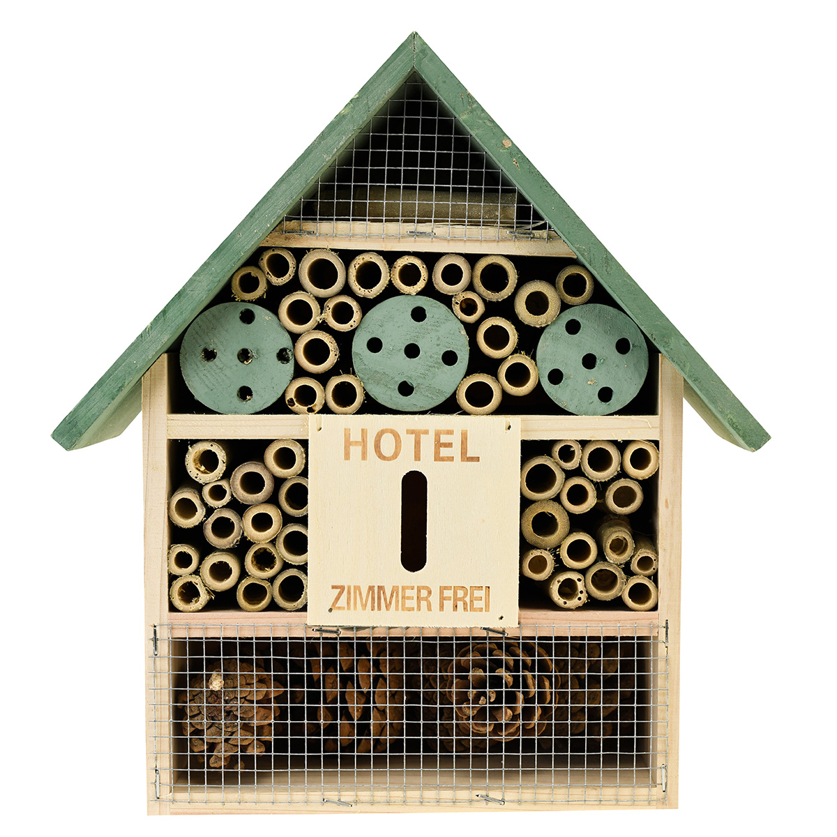 Helyezze a rovarházat magasabb helyre, védve az esőtől és a talajban élő ragadozóktól, bajkeverőktől, hogy vendégei hamar otthon érezzék magukat.