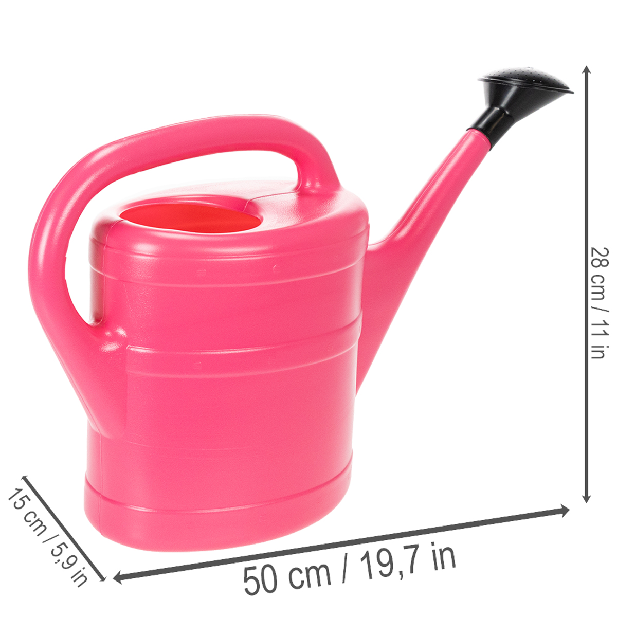 Tökéletes az erkélyre! Ez a rózsaszín öntözőkanna, körülbelül 5 literes űrtartalommal, egy praktikus, megbízható és robusztus öntözőkanna a teraszon, erkélyen vagy az előkertben lévő növények számára. A vízadagoló kényelmes fogantyúval rendelkezik, amely biztosítja, hogy a kanna teli állapotban is egyensúlyban maradjon. Magán az öntözőkannán kívül egy fekete rózsát is kapsz, amely a kényes növények megfelelő mennyiségű vízzel való öntözéséhez rögzíthető.