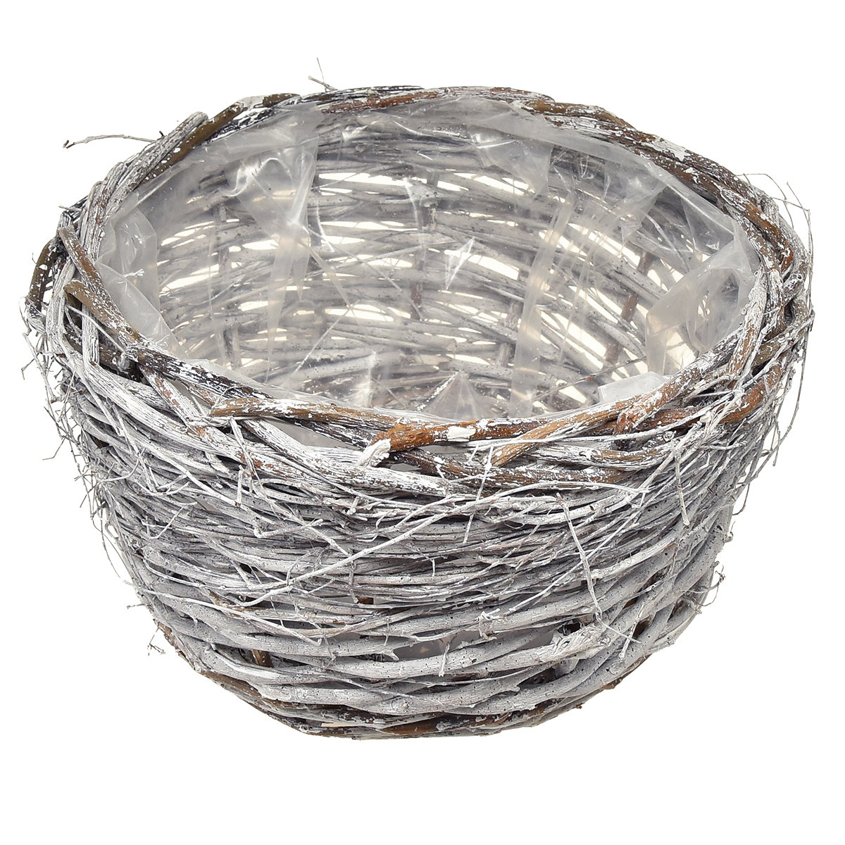 Rusztikus fonott kosaraink a vidéki melegséget testesítik meg természetes szürke tónusaikkal és puha fehérre mosott felületükkel. A 40 cm-es, 33 cm-es és 26 cm-es méretek fóliával vannak kialakítva, és sokféle felhasználási lehetőséget kínálnak - legyen szó stílusos virágtartóról vagy esztétikus tárolási megoldásról. A robusztus fogantyúknak köszönhetően a szállítás egyszerű. Ideális esetben kosaraink finomabb szerepben is beváltak a tengeri, skandináv vagy klasszikus stílusú otthoni kiegészítők kiegészítéseként, a természetes összetevőt hangsúlyozva.