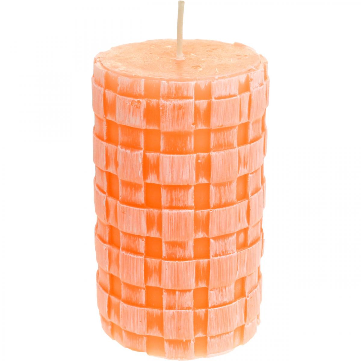 Termék neve: Rusztikus, narancssárga oszlopgyertyák kosárfonás mintával 110/65 – 2 db-os prémium viaszgyertya-csomag, önkioltó