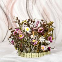 2900 HUFFüggő dekoráció, mint a manóerdőből: A kerek tetejű madárház fából készült, tavaszi zöldre festve. A dekoratív ház ekkor meseszerűen lóg a falon vagy a mennyezeten. A tető félbevágott ágakból készült és barna mázas, majd finoman meszelt, hogy még tavasziasabb sikkes legyen. A díszházat felakaszthatja a tetőre már rögzített juta zsinórra. Hagyja, hogy a madárház bejárati nyílásából festői módon emelkedjenek ki a száraz füvek, díszítse...