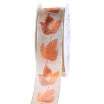 Selyem szalag ajándék szalag levelek bézs zöld 10mm 20m