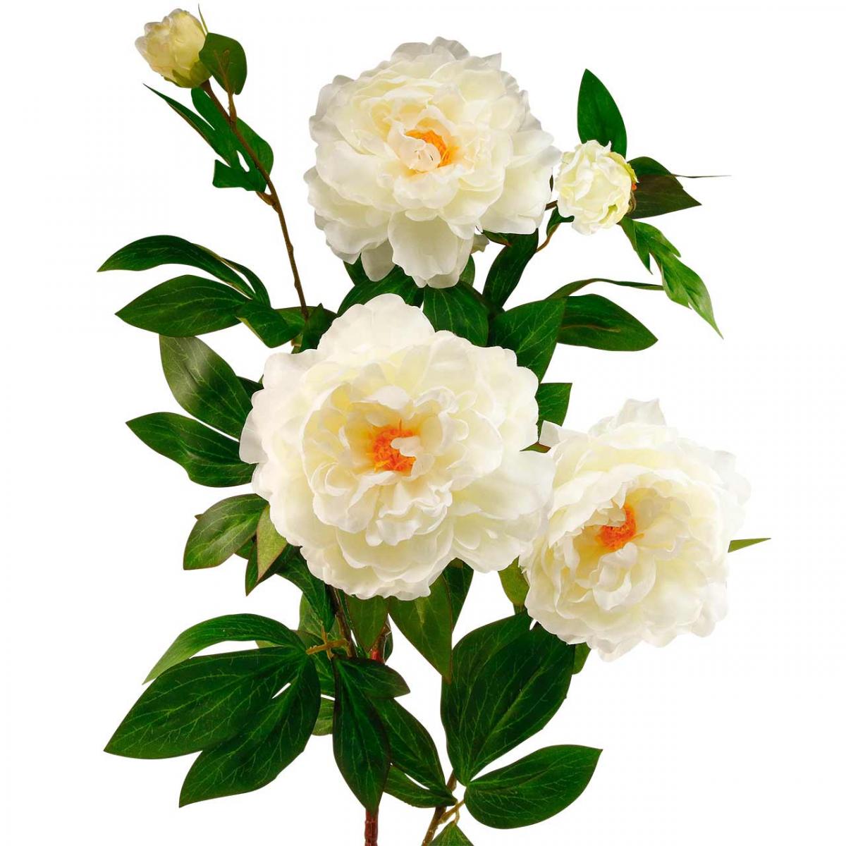 A részletesen megformált és sok színárnyalattal megtervezett művirágok valódinak tűnnek, és még akkor is meggyőzőek, ha megérinti őket valódi érintésükkel. A krémszínű mesterséges bazsarózsa három teljesen kivirágzott és két kisebb virágból áll. Így ragadják meg a selyemvirágok a bazsarózsát teljes pompájában, beleértve a bimbókat és a plusz leveleket is!