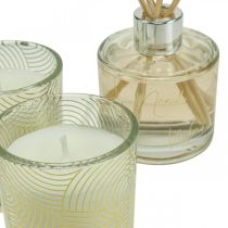 Illatos gyertyák a pohárban asztali gyertyának és nyári dekorációnak