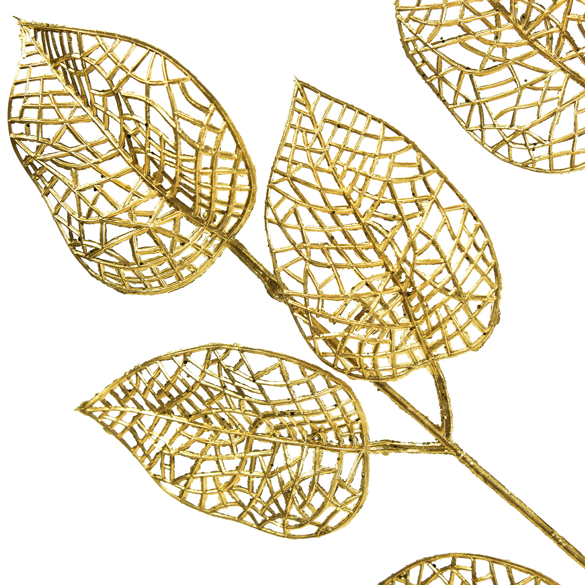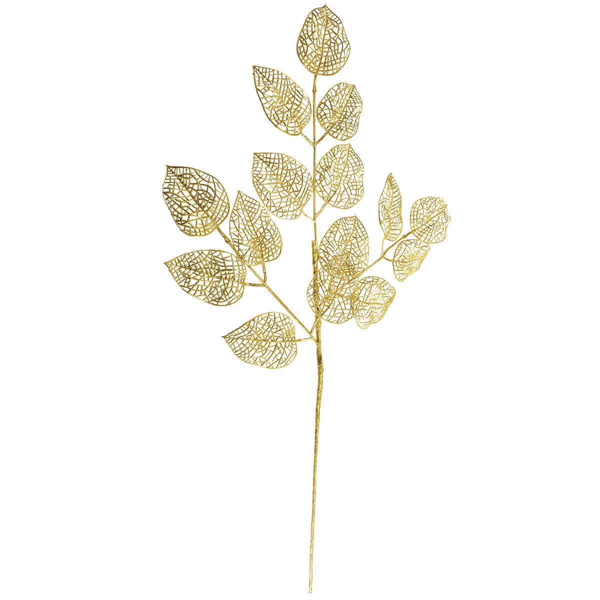 Így teljesen aranyba mártva a csontvázlevelekkel ellátott ágdísz az arany őszbe és a nemes karácsonyi díszekhez egyaránt passzol. A belsejében található fém mag biztosítja, hogy a szárat és az ágat meg tudja hajlítani.