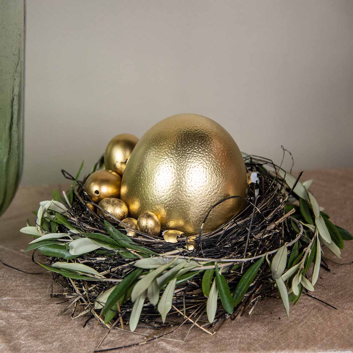 A világ legnagyobb natúr húsvéti tojása: a strucctojás mint arany díszítés igazi mutató a húsvéti dekorációban és mindenféle eredeti dekorációban, a natúr terméket gondosan kifújták, megtisztították, majd fényes arany színt kapott.A tojás tetején lévő lyuk elrejthető a húsvéti kosárban, vagy akasztó rögzítésére használható. A strucctojás csodálatosan eredetinek tűnik mű- vagy szárított virágok díszítővázaként is!