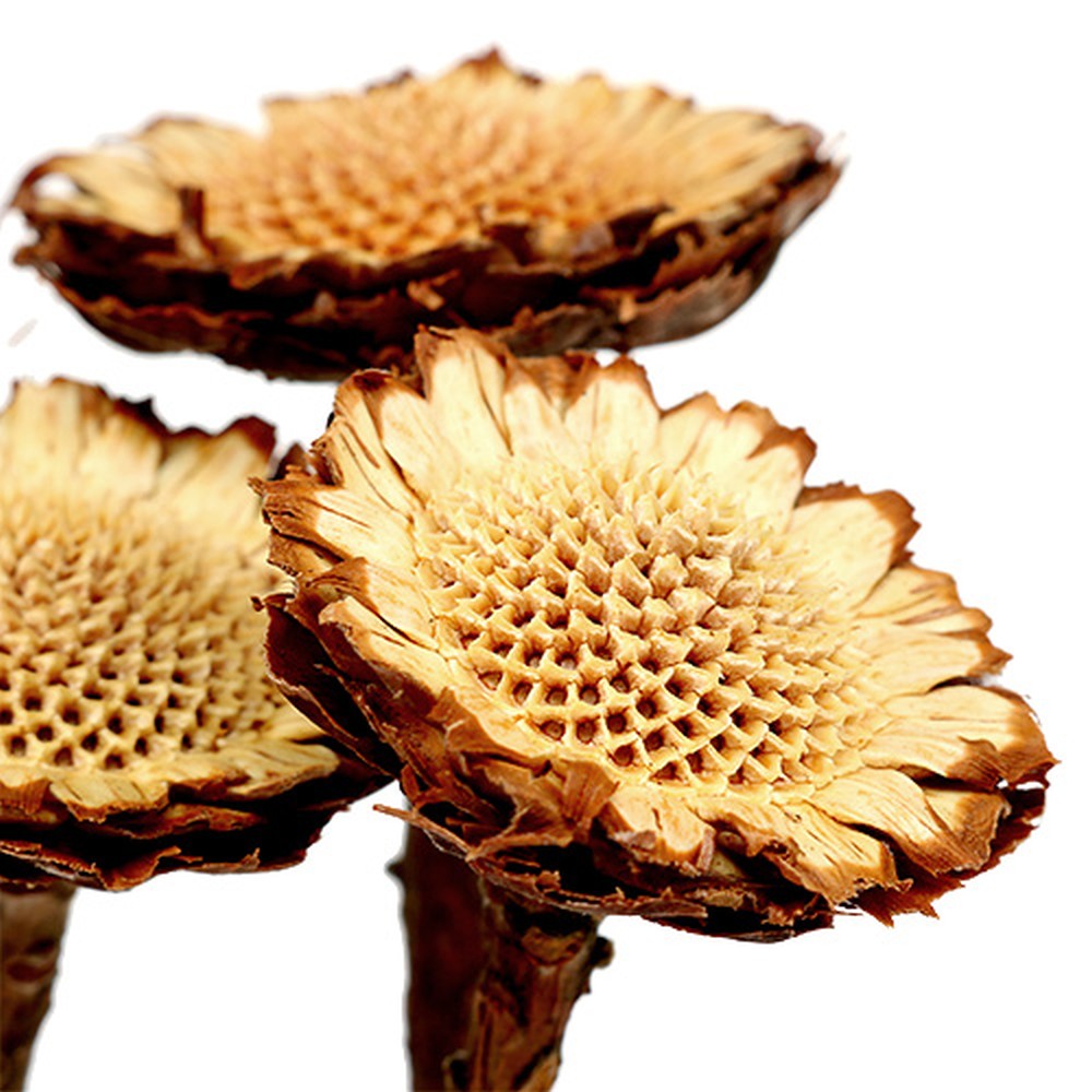 A gyönyörű rozetta tökéletesen illeszkedik egy temetési díszbe, a ragyogó virág pedig az örök életet jelenti. A Protea nemzetség más szárított virágaival kombinálva kecses és megnyugtató emlékműveket varázsolhat.
