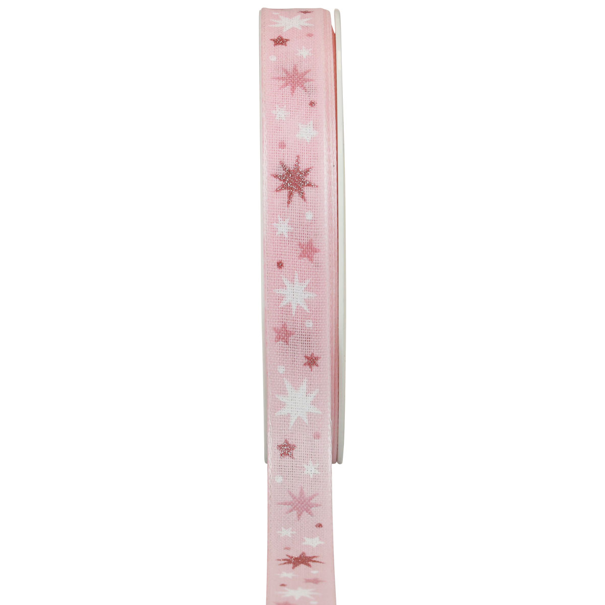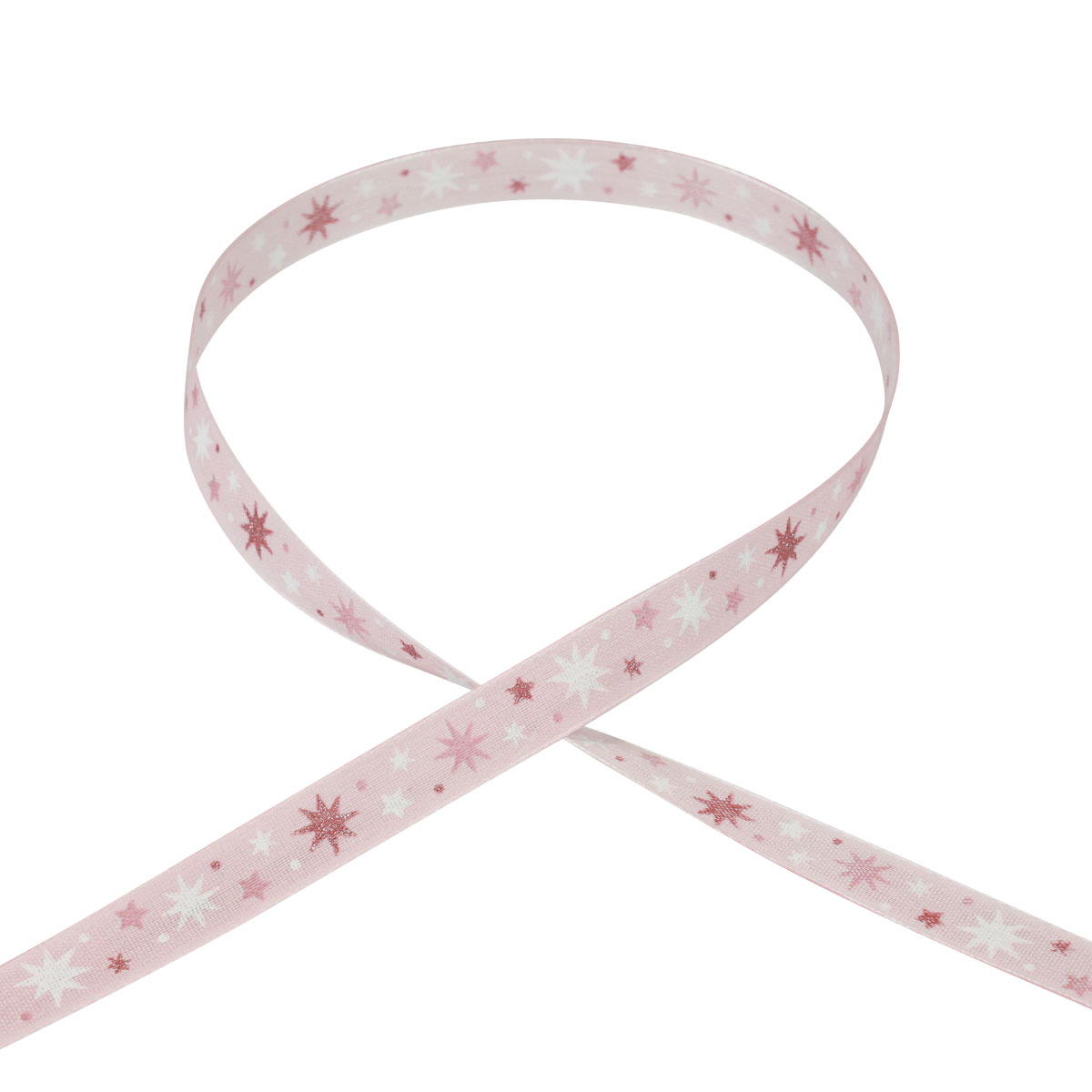 Szalag karácsonyi ajándék szalag rózsaszín csillagmintás 15mm 20m