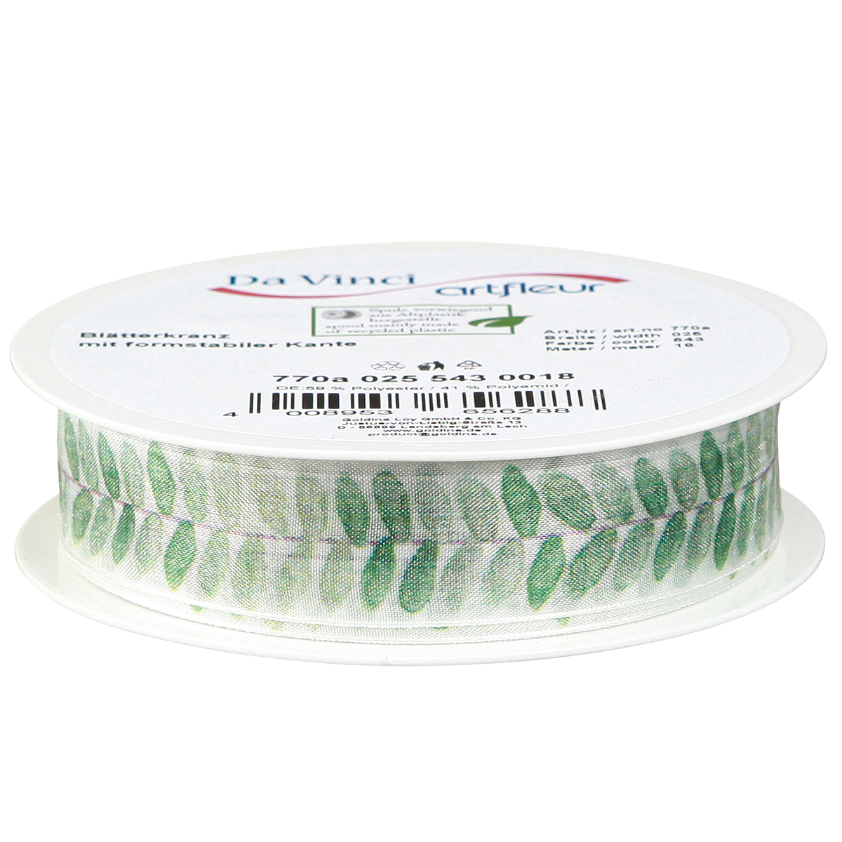 Termék neve: Szalag zöld levelek organza szalag dekoratív szalag 25mm 18m