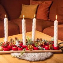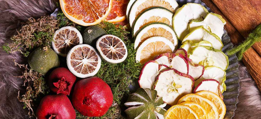 A szárított gyümölcsökből, héjból és gyömbérből készült natúr díszítések bármilyen dekorációhoz felhasználhatók. A szárított növények természetes karaktere összetéveszthetetlen, és megkülönbözteti ezeket a dekorációs elemeket.