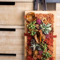 Szárított gyümölcsökből és növényekből készült natúr dekoráció emlékkertészethez