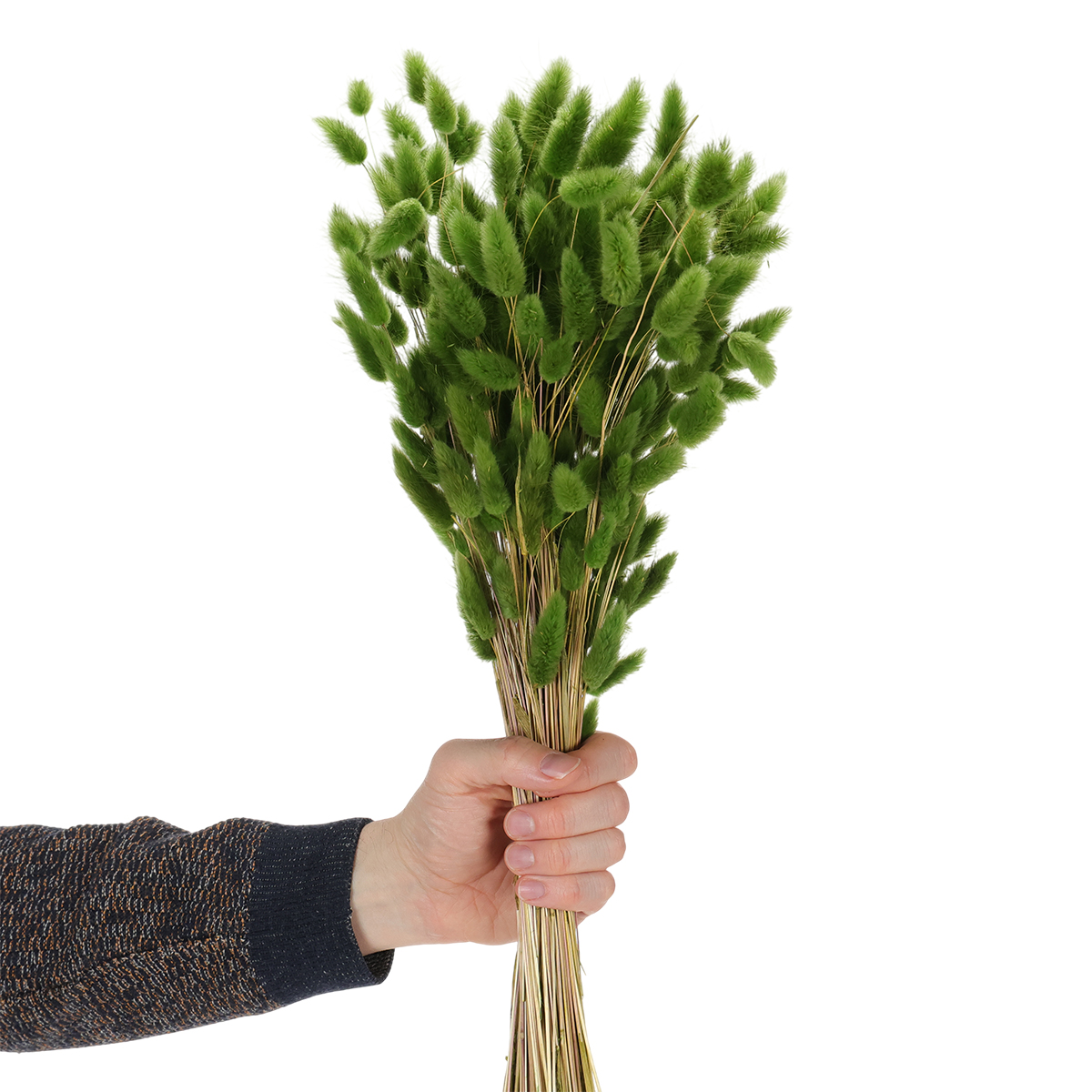 Ez a szárított olívazöld lagurusfű egy csipetnyi élénkséget kölcsönöz bármilyen bohém stílusú szárított virágkompozíciónak. A szárított fű élénkzöld színe az egyik legtrendibb, amit a szárított virágkompozíciók széles választékában láthat.