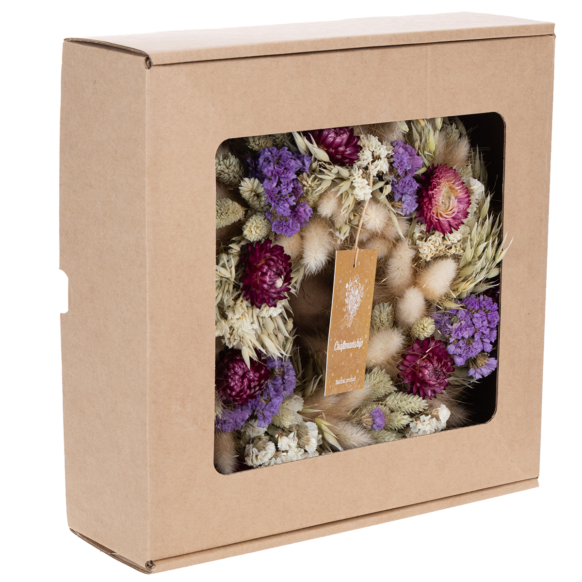 25 centiméter átmérőjével ez a szárazvirág-koszorú harmonikusan illeszkedik bármilyen környezetbe anélkül, hogy feltűnő lenne. A gondosan válogatott virágok és természetes anyagok – a bársonyos fűféléktől a finom bézs, lila, bordó és krémszínű virágokig – egyedi bájt kölcsönöznek neki. A romantikustól a modernig, ez a kézzel készített szárazvirág-koszorú kiegészíti a különböző stílusokat, és mindig természetes eleganciát sugároz.