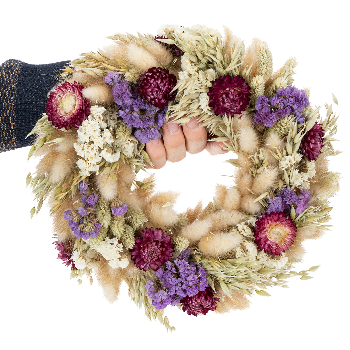 Ez a koszorú könnyen díszíthető. Akár családi ünnepségek központi díszeként, vendégek fogadására fali- vagy ajtókoszorúként, vagy a hálószobában vagy a nappaliban egy friss kiegészítőként szolgál – sokoldalú felhasználási módjai vannak. A tartós szárított virágok hónapokig megőrzik színük intenzitását és formájukat, így ideálisak ismétlődő dekorációkhoz.