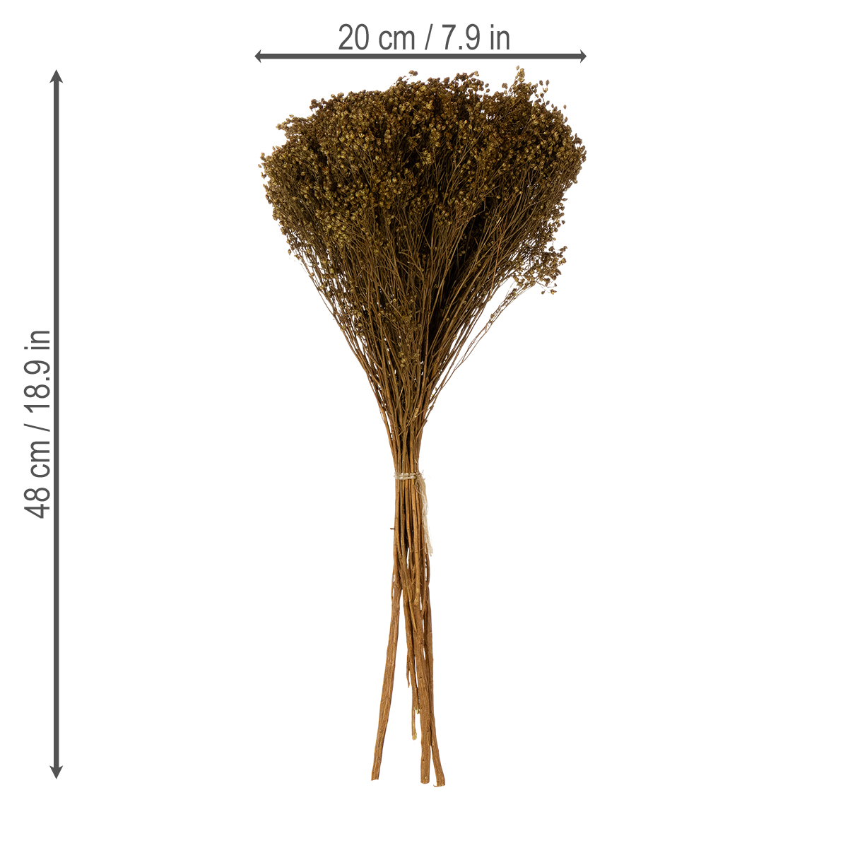 A szárított, festett virágseprűt körülbelül 150 gramm súlyú kötegben kapja meg. Az ágak hossza 40 és 48 centiméter között változik. A köteg átmérője körülbelül 20 centiméter.