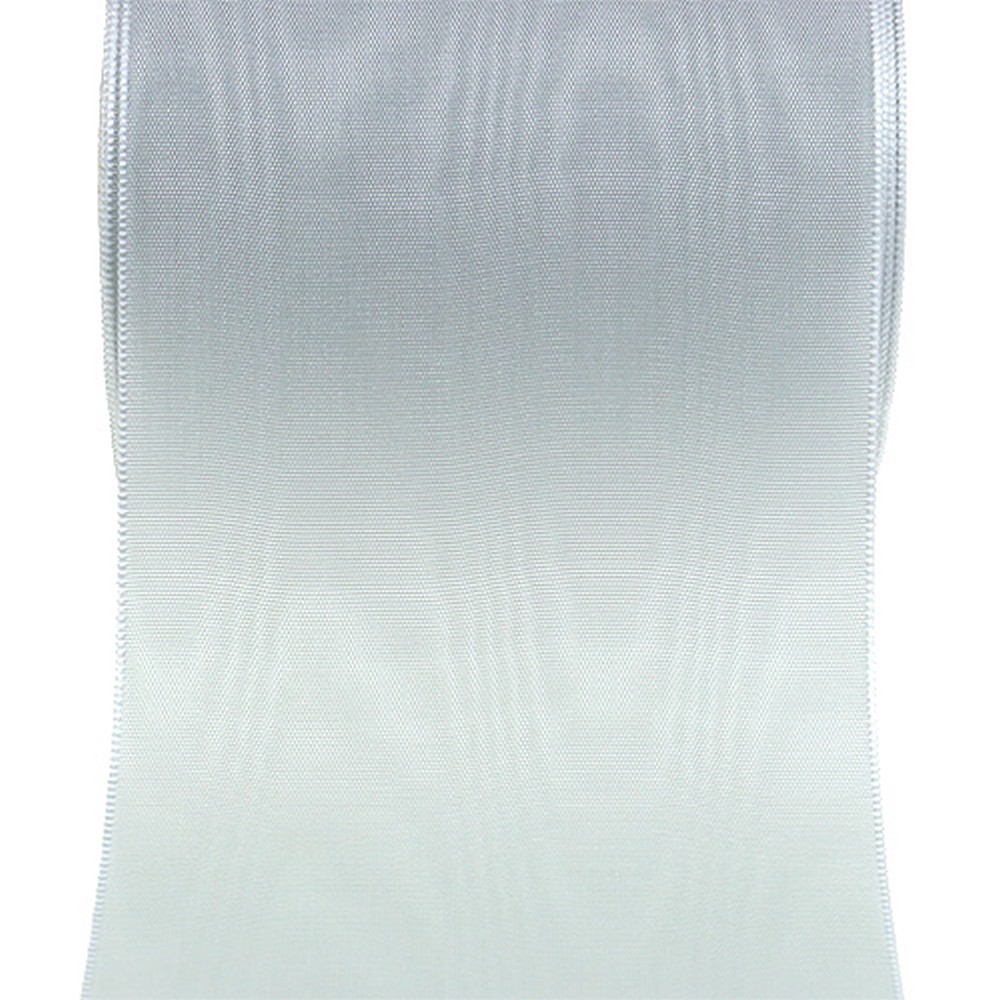 Szatén koszorúszalag, ezüst, 100 mm széles, 25 m hosszú, temetési koszorúkhoz, emlékkoszorúkhoz és évfordulókhoz, időjárásálló és komposztálható