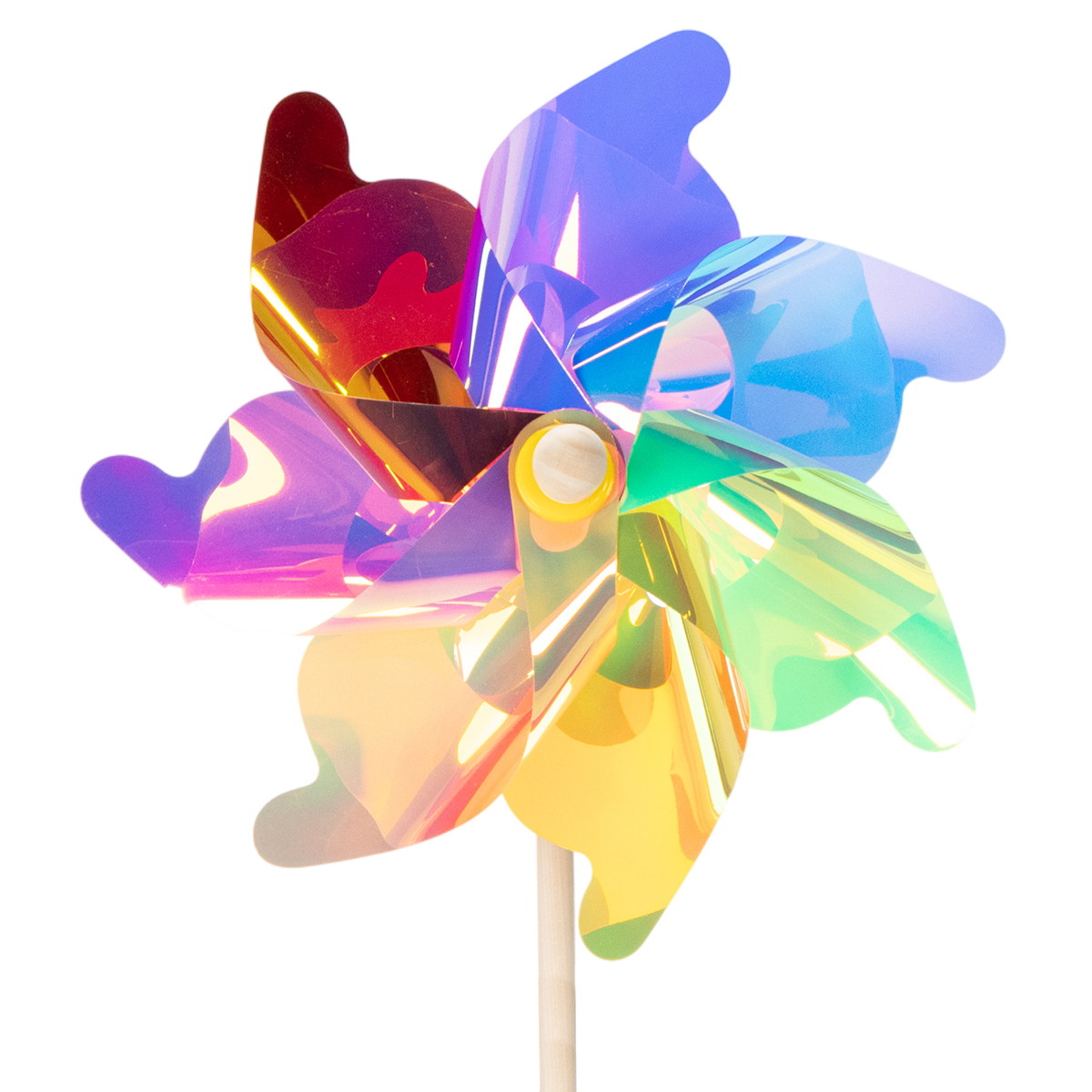 Ez a színes szélforgó nemcsak szemet gyönyörködtető, de csodálatos kiegészítője is a kültéri terednek. 75 cm magas és 30 cm átmérőjű, így jól látható és könnyen elhelyezhető. A műanyag pengék irizáló színekben csillognak, míg a fa rúd természetes és masszív kontrasztot biztosít. Ezen anyagok kombinációja biztosítja, hogy a szélforgó ellenálljon a szélnek és az időjárásnak – mégis elég könnyű marad ahhoz, hogy kecsesen forogjon még enyhe szellőben is.
