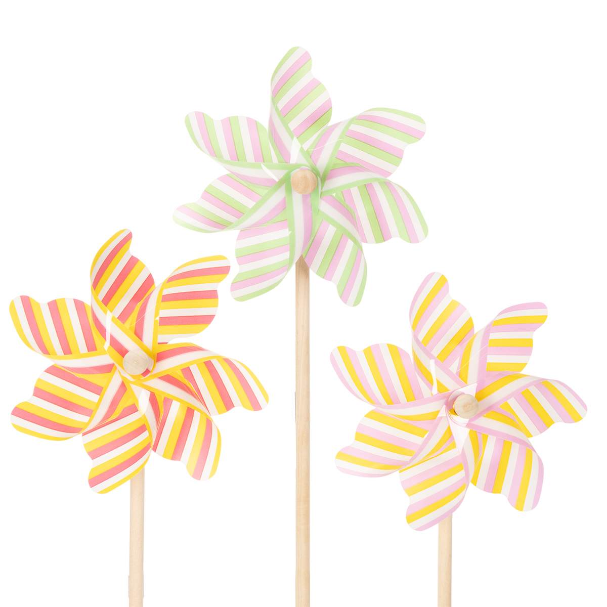 - 3 db finom pasztellszínű csíkos szélmalomból álló szett