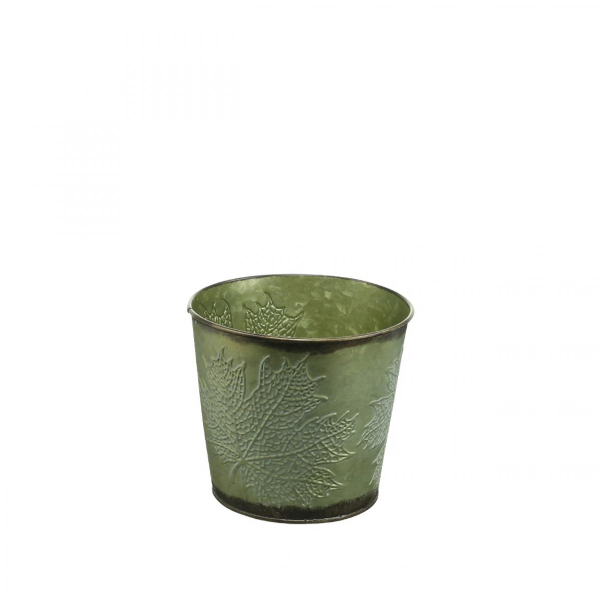 Termék neve: Őszi ültetőgép, levéldíszítéssel, fém vödör zöld Ø14cm H12,5cm