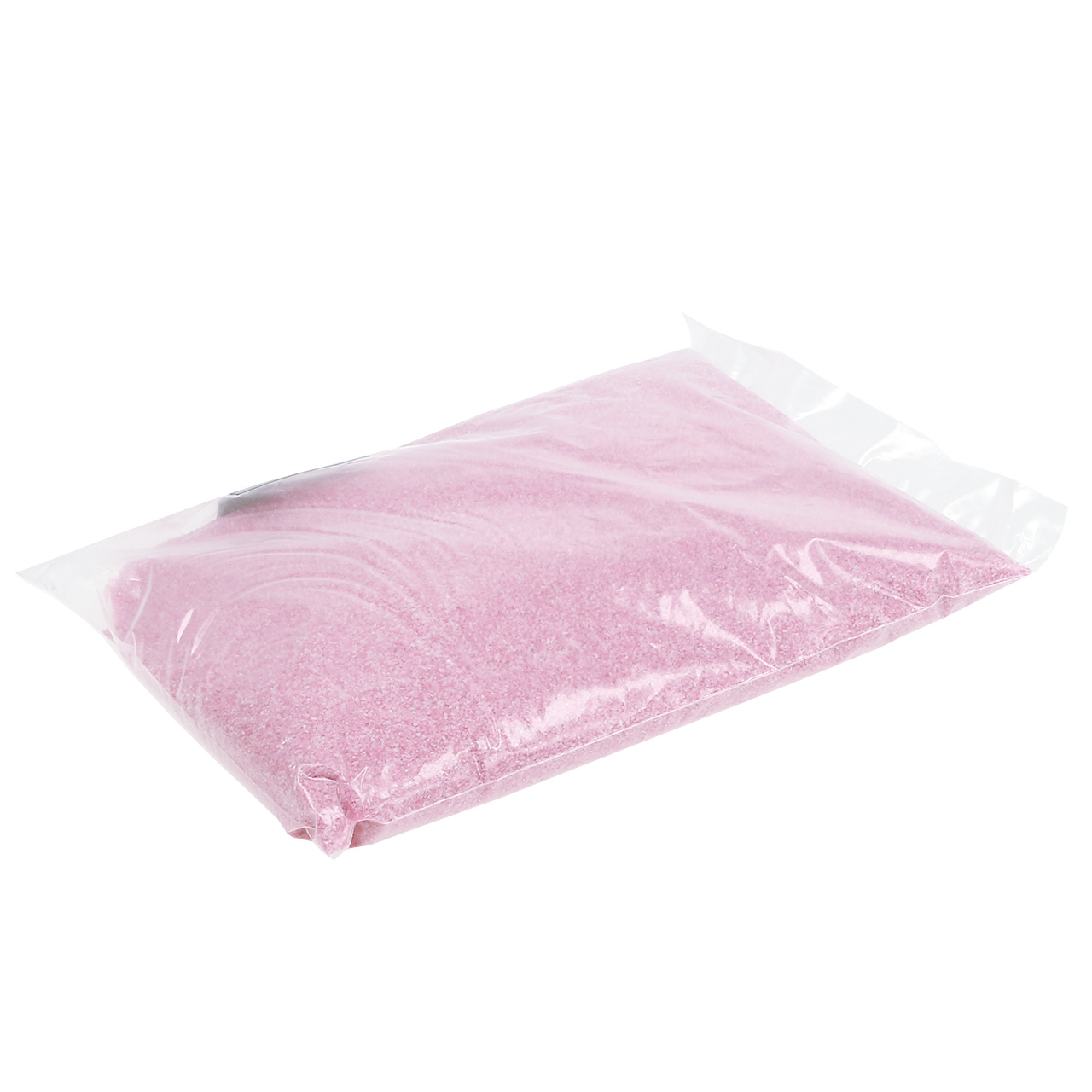 Az ide szállított, 2 kilogrammos rózsaszín homok kiszerelése hozzávetőlegesen 0,5 milliméteres homokszemeket tartalmaz.