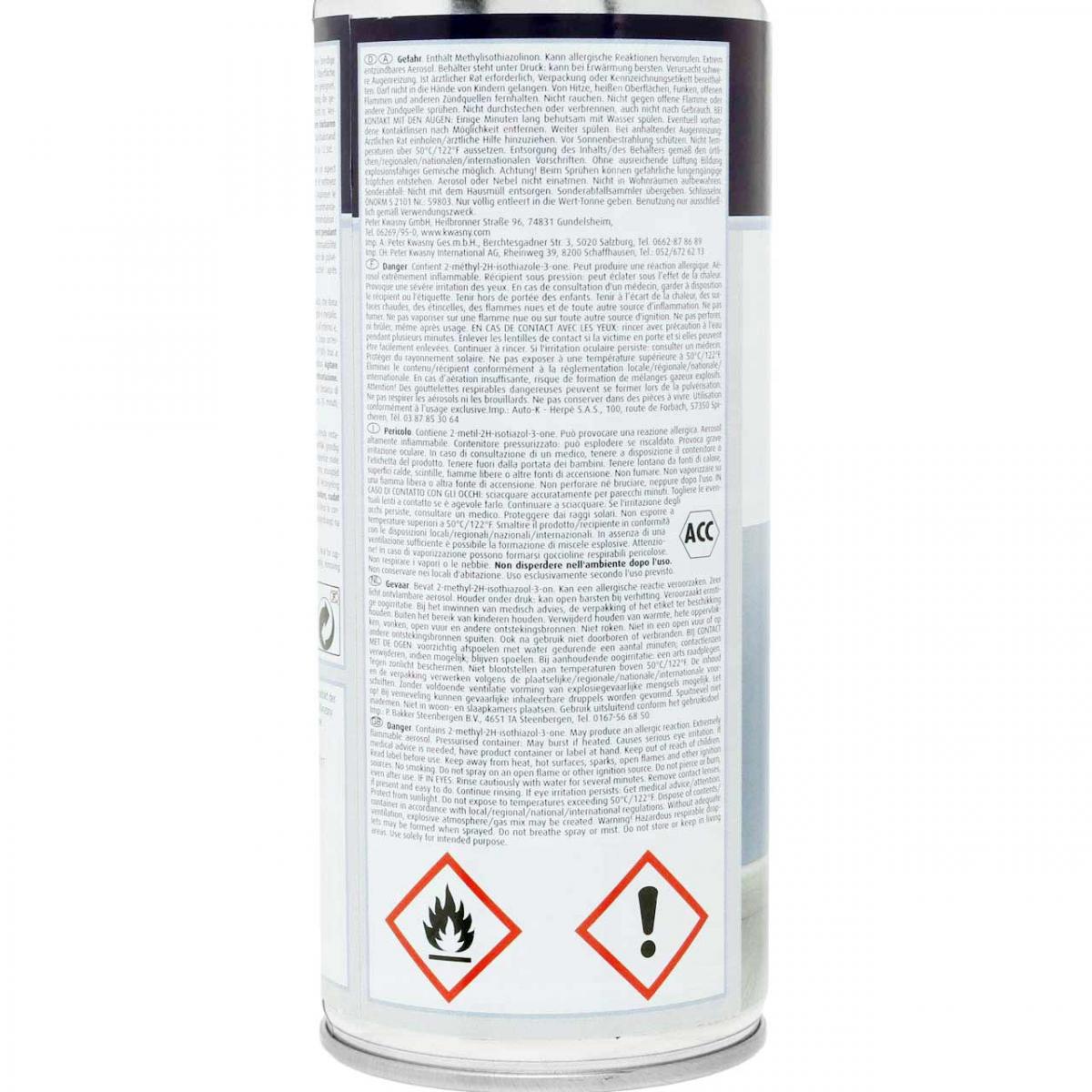 Összetevők: Aceton, n-butil-acetát, 2-metoxi-1-metil-etil-acetát, propán, bután, izobután, etanol, 2-propanol, titán-dioxid, xilol.
