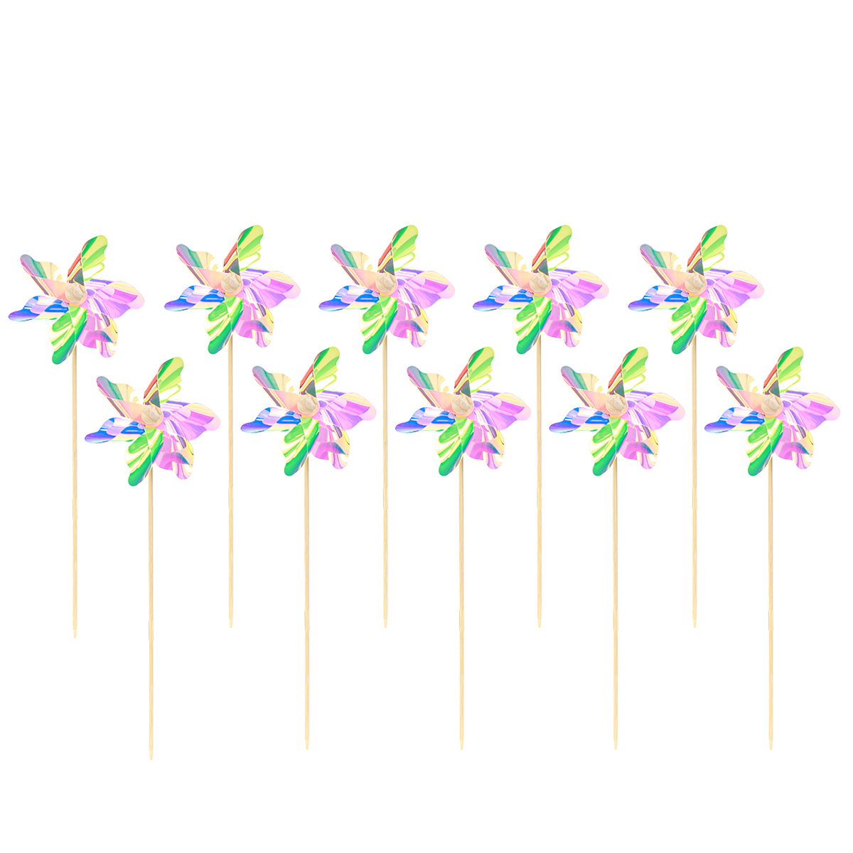 Színes szivárványkerekű szélmalom pálcán Ø8,5cm 10 db