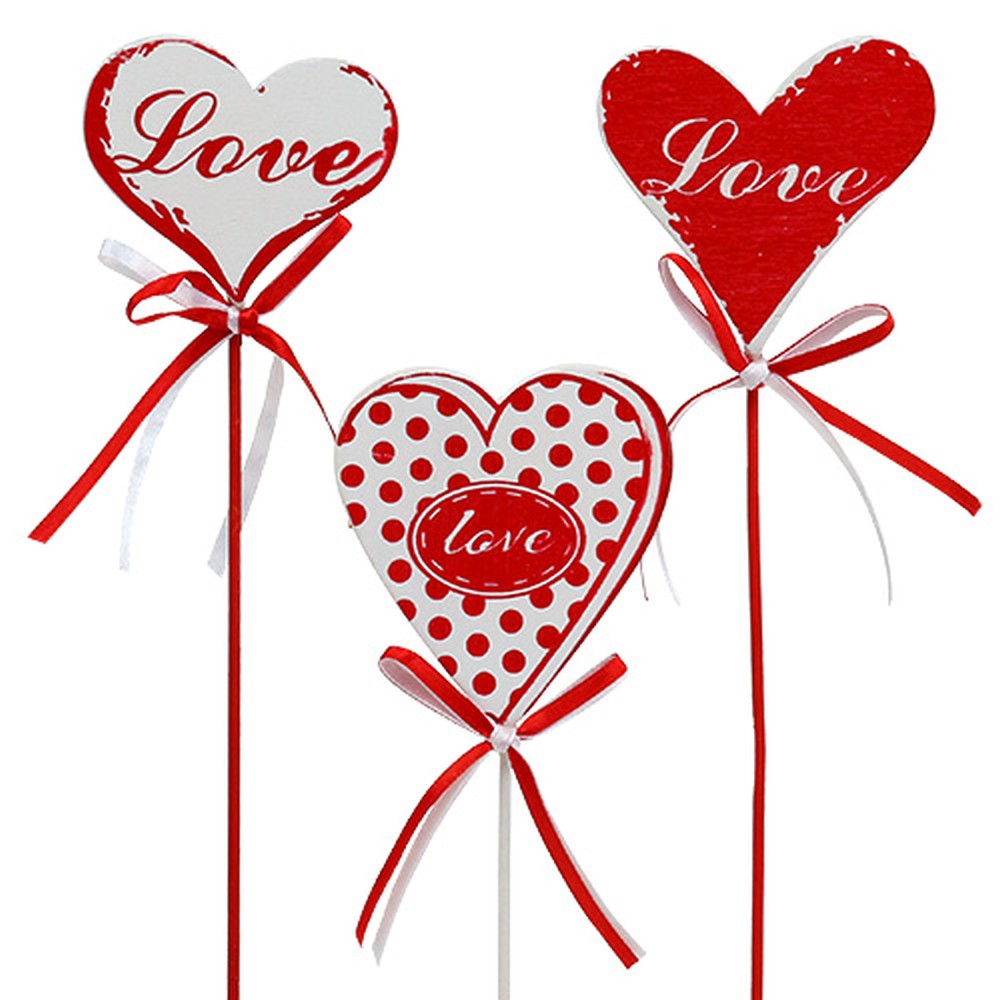 Szív alakú csokordugó, Valentin-nap, virágdísz H6cm 6 db