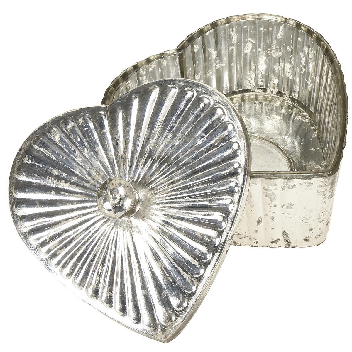 Szív alakú konzervdoboz tetővel, üvegdoboz szívvel, pezsgőszínű, 15,5×15×10cm