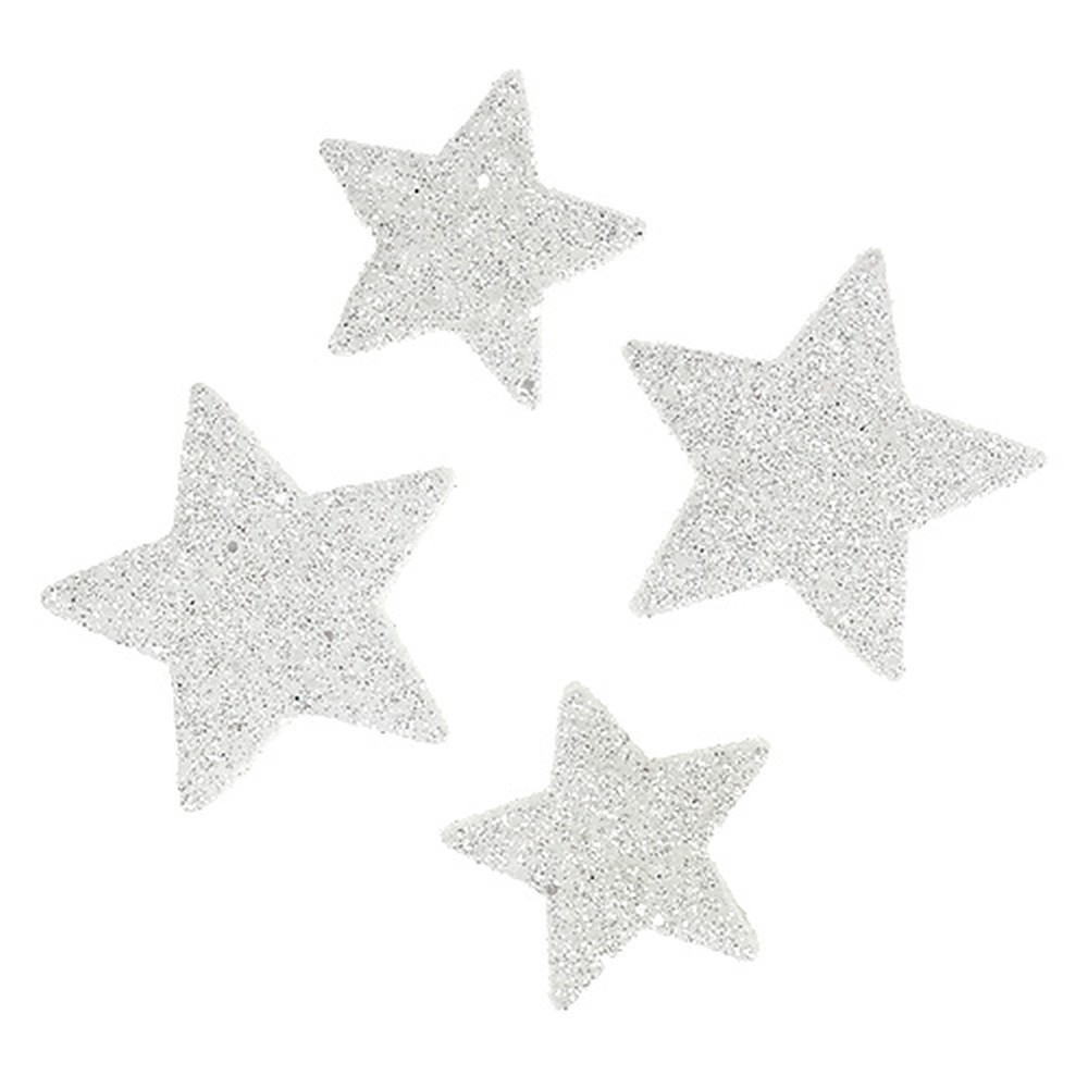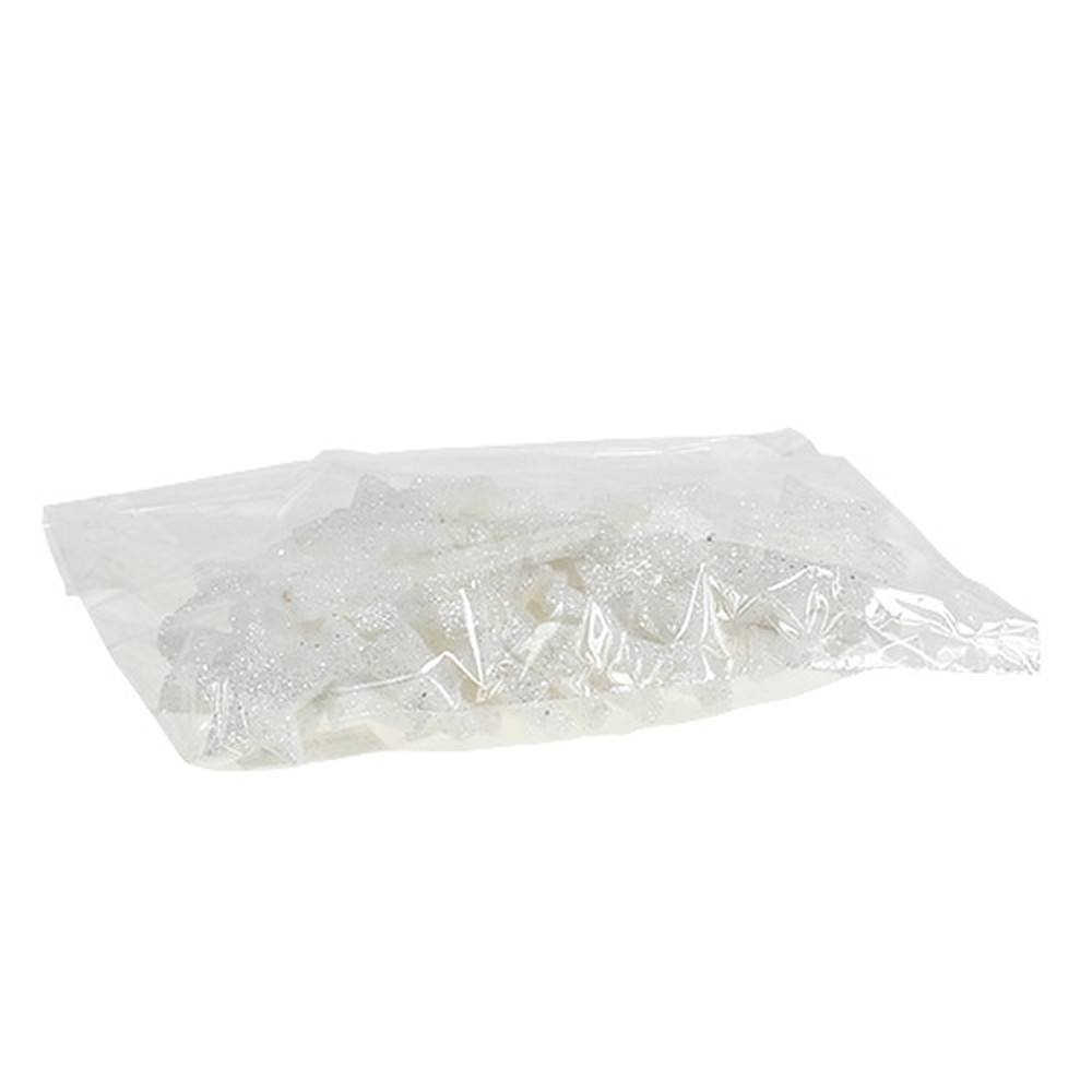 Szórt dekorációs csillagok fehér csillámmal 4-5cm 40 db