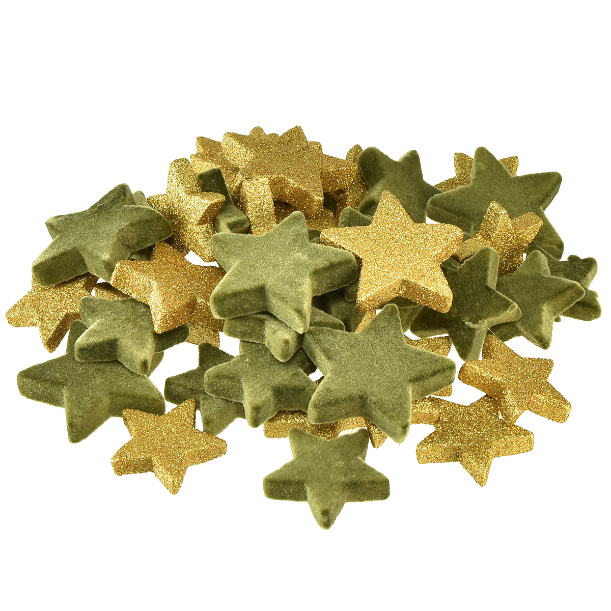 Szórványdísz csillag zöld és arany csillogó asztaldísz karácsonyi 4/5cm 40 db