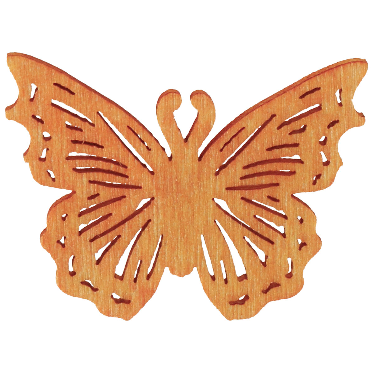 A pillangókból készült vegyes szórt dekoráció tavaszi színekben pompázik. A fából készült pillangókat művészi kivágások díszítik. Az antennák és a kinyújtott szárnyak precíz formájúak, míg a szárnyakból dekoratív mintát lyukasztottak ki.