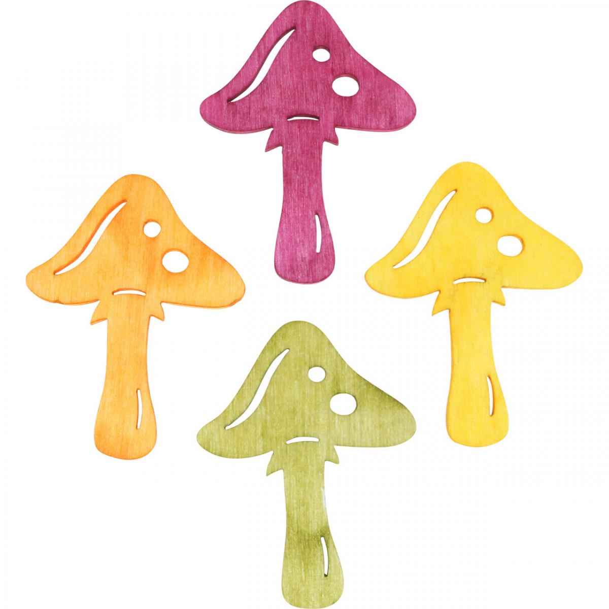 Szórványos díszítő gombák, őszi dekoráció, szerencsegombák díszítéshez narancs, sárga, zöld, rózsaszín H3,5/4cm SZ4/3cm 72 db
