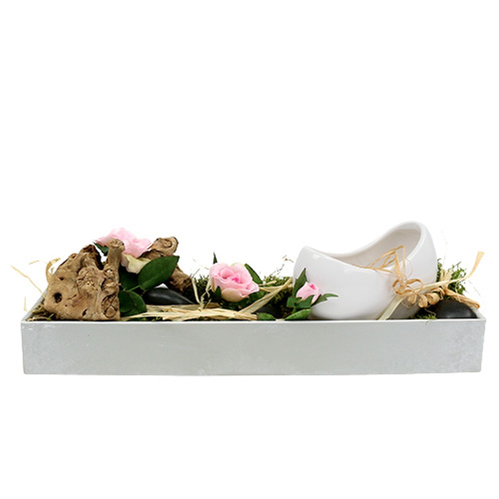 Lehetősége van arra is, hogy két kis cserepes virágot, például fehér tulipánt kombináljon a tálban, fehér szizál vagy filc gyapjút és díszszalagot adjon hozzá: Így kaphat egy igényes asztaldíszt esküvőre vagy keresztelőre. De finom és ízletes fűszernövényeket is felhúzhat a cserépbe némi tápanyagban gazdag talajjal és megfelelő magvakkal, és a tálat csodálatosan elhelyezheti a konyhaablak mellett, így egyrészt elegendő fényt kapnak a növények, és mindig megvannak a fűszernövények. kéznél van a másikon.