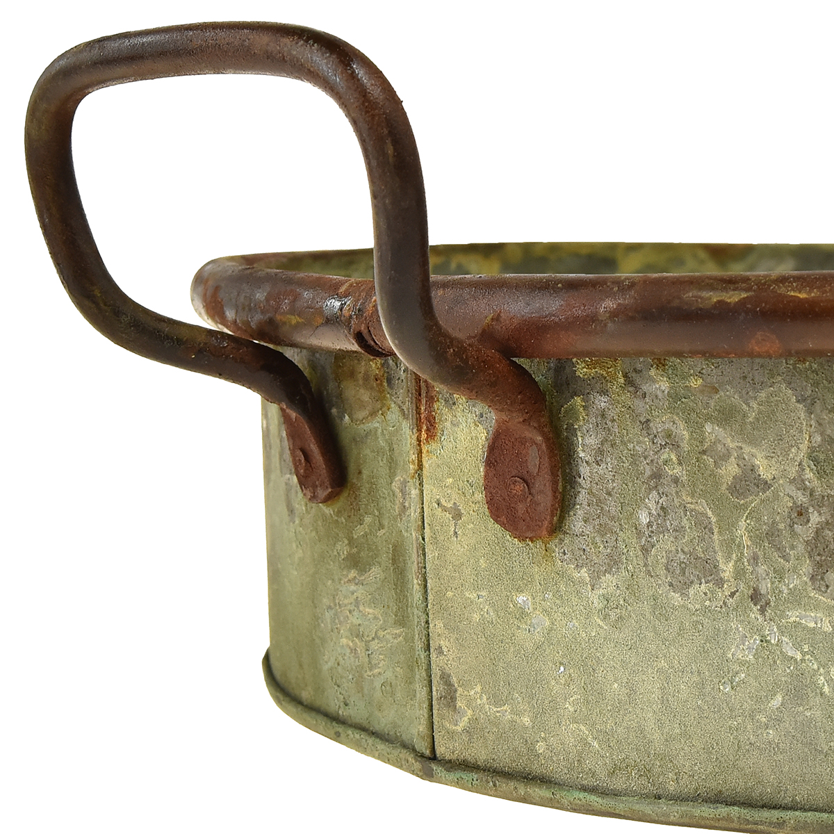 Az ovális forma a rusztikus fém megjelenéssel kombinálva rendkívüli dekorációs elemet alkot. A robusztus fogantyúk kényelmes kezelést tesznek lehetővé, míg a szándékosan alkalmazott rozsdarészletek egyedi tapintást adnak minden darabnak. Különböző méretükkel ezek a tálak rengeteg helyet kínálnak kreatív dekorációs ötleteinek.
