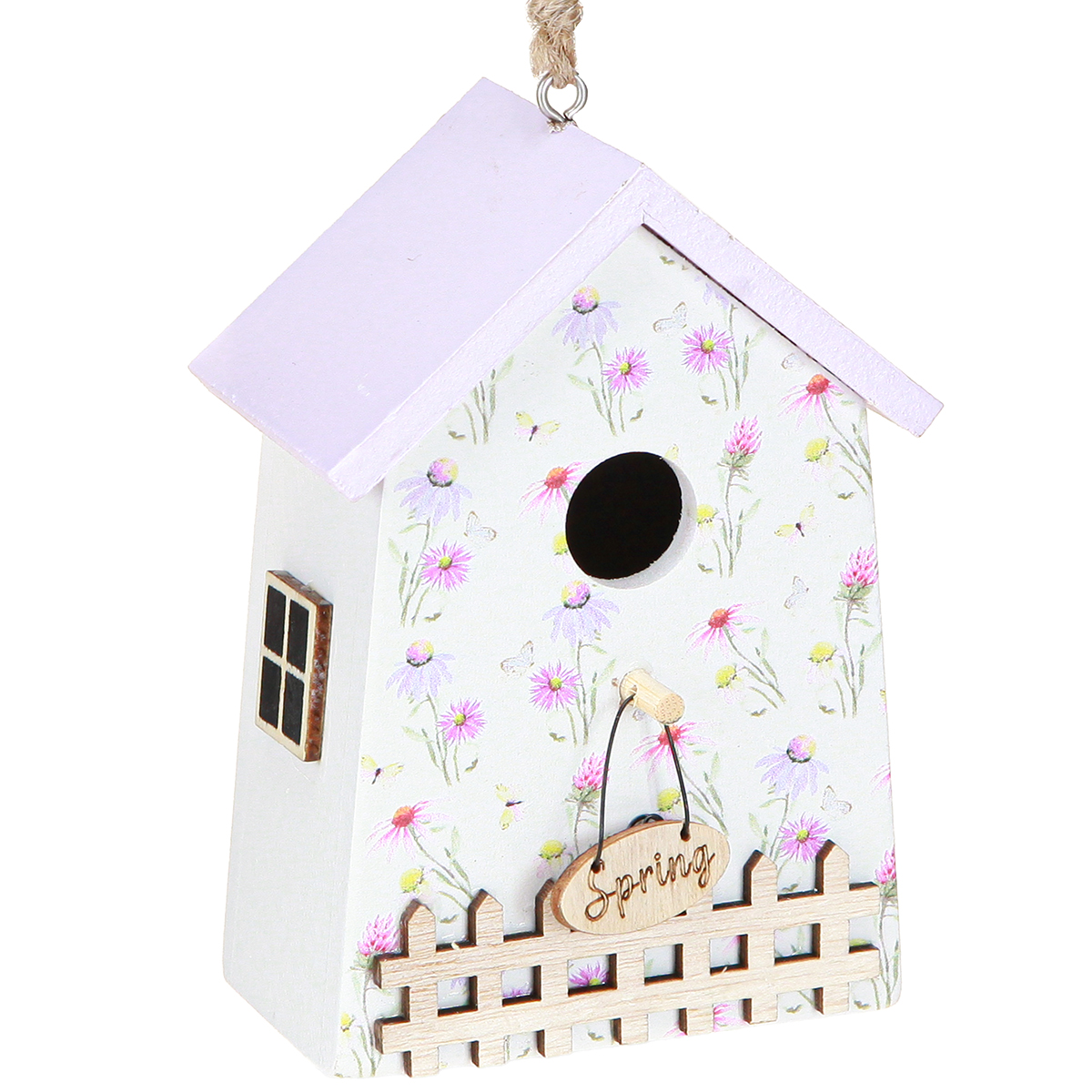 Tavaszi dekoráció Madárház Lila Fehér H11cm 3 db