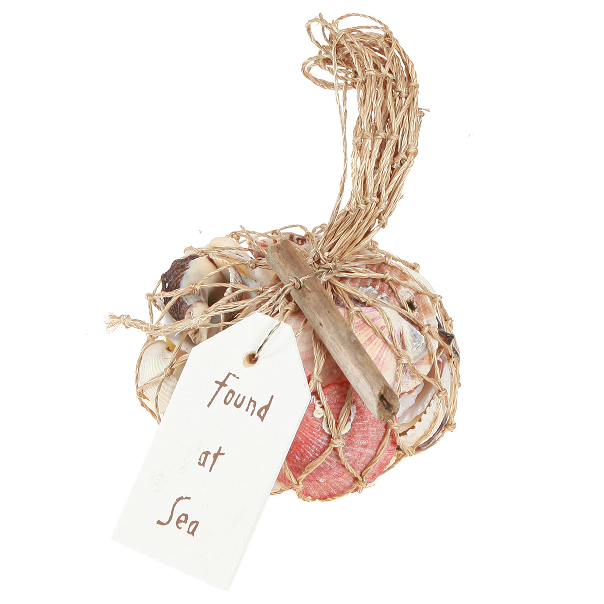 A színes kagylókeveréket hangulatos módon mutatjuk be Önnek - gyönyörű jutahálóban és egy angol "Found at Sea" feliratú fa medállal. Ez magában foglalja a kevert héjakat véletlenszerű színben, méretben és formában. Ez a tengeri dekoráció az interneten is szemet gyönyörködtető!