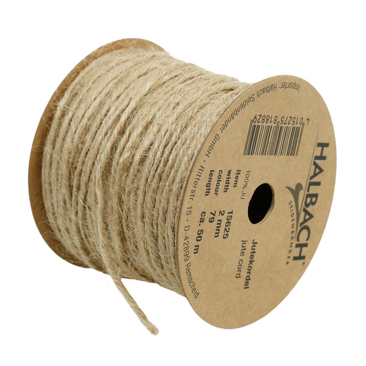 A juta zsinór természetes színében praktikus, körülbelül 50 méter hosszú kartondobon kapható. A menet átmérője körülbelül 2 milliméter. Ezzel a vezetékkel karácsonyfagolyókat és egyéb tárgyakat is felakaszthat.